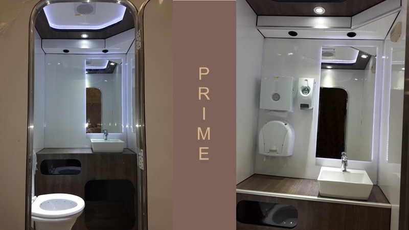 O banheiro trailer BOSS PRIME é uma nova opção no mercado para os organizadores mais exigentes que desejam oferecer aos seus convidados o melhor que existe em banheiros de alto padrão para eventos de qualquer tipo. Além disso, todas as cabines são climatizadas e possuem ar condicionado, suportes para bolsas, espelhos e torneiras. O banheiro trailer BOSS PRIME não precisa ser conectado à rede de esgoto ou água, tornando-se parcialmente independente da infraestrutura do local do evento. Mobilidade, autonomia, higiene, qualidade e luxo fazem parte da identidade do banheiro trailer BOSS PRIME.